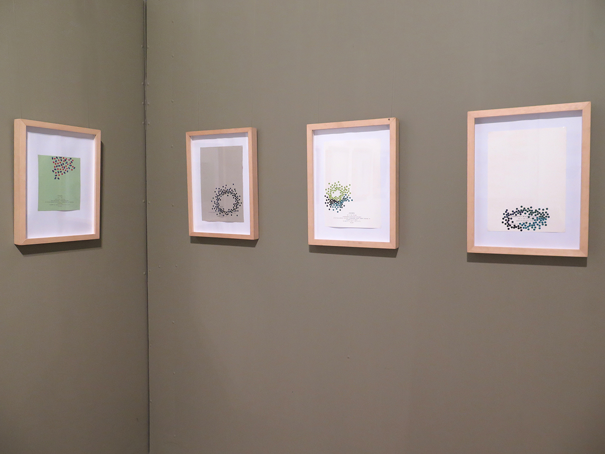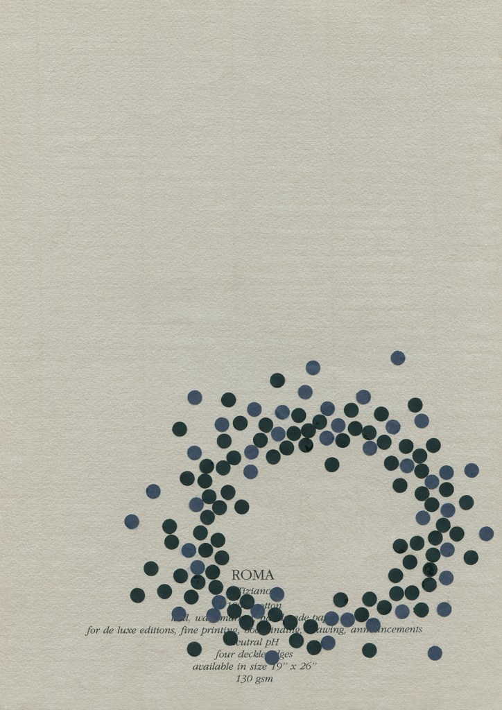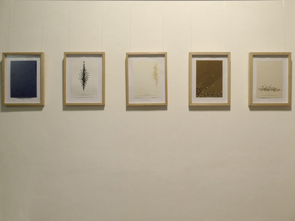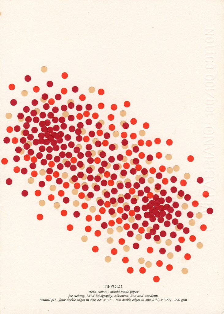 El pequeño círculo, como elemento básico, se multiplica en relaciones y colores sobre un soporte que adquiere protagonismo y dice lo suyo, soporte que habla de sí mismo, se presenta, se muestra, actúa, dialoga con los elementos dispuestos de múltiples maneras. Tal vez en interacciones secretas que se escapan al observador apresurado. Surgen entonces posibilidades que desafían la imaginación y que uno sospecha, no terminan ahí. Además no puedo evitar suponerte en tu propio accionar con el sacabocados, haciendo acopio de pequeños círculos*, bocados que Fabriano digiere y devuelve en asombrosas estructuras. Trabajo de orfebre y artesano en momentos de soledad que no es tal, dada la riqueza del interjuego de imaginación y materia. Es un planteo que, llevado a un código musical, anticipa inesperadas melodías, la sola disposición las sugiere en cada trabajo. Por lo tanto tu obra está viva, promete, incita, nos pone en contacto con lo infinito, este diálogo podría no tener fin e, incluso, uno quisiera seguir internándose en el misterio.