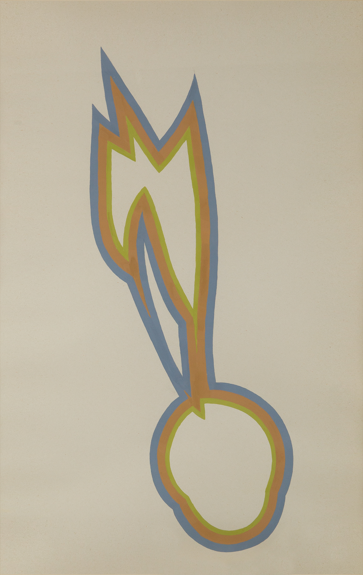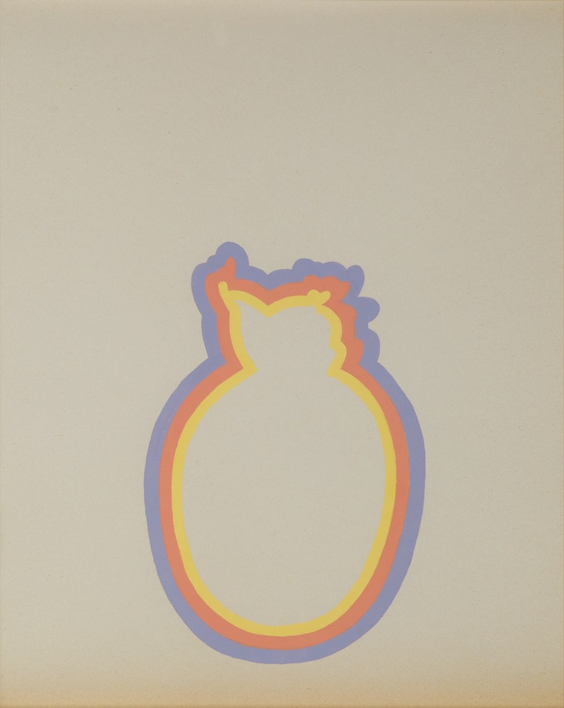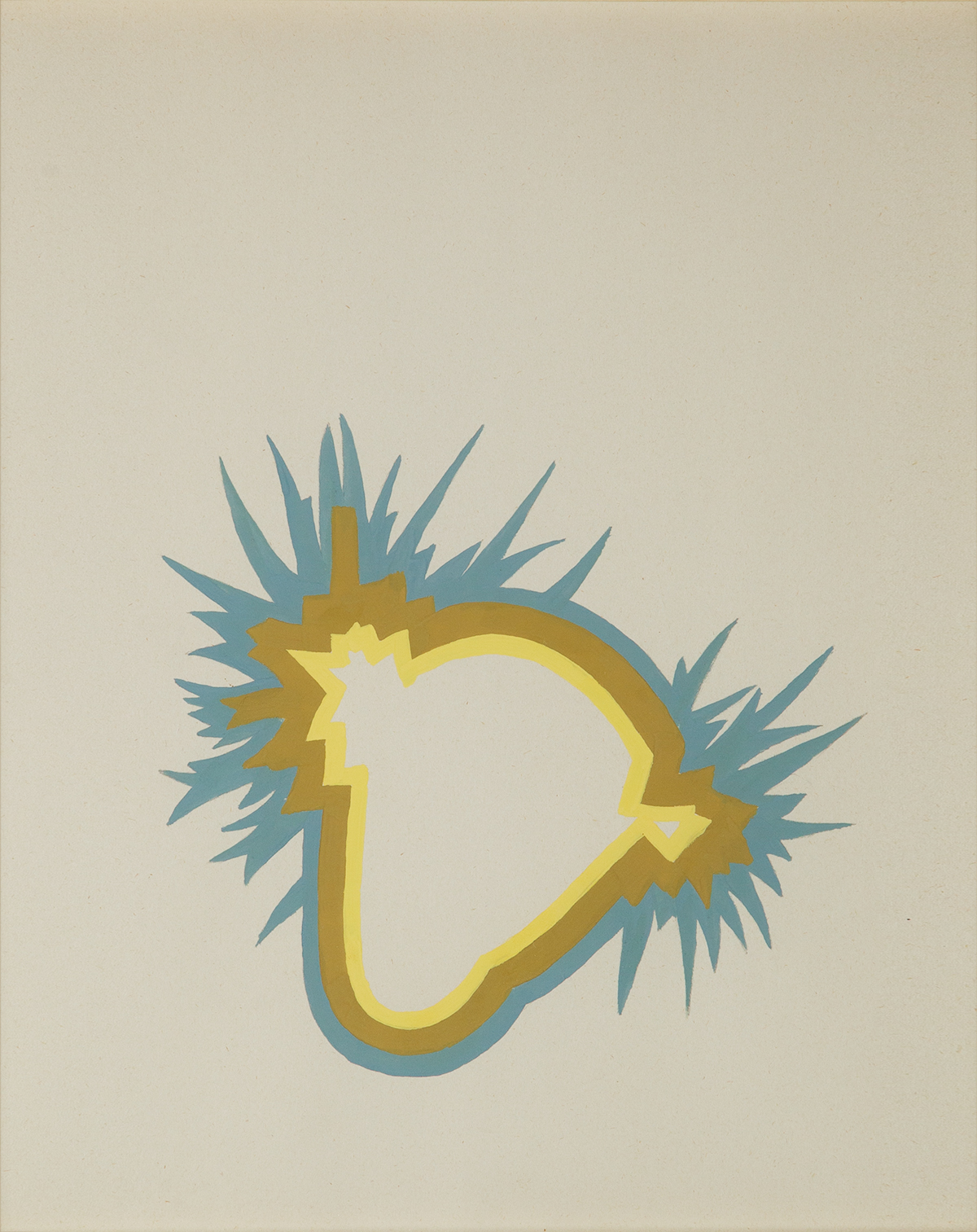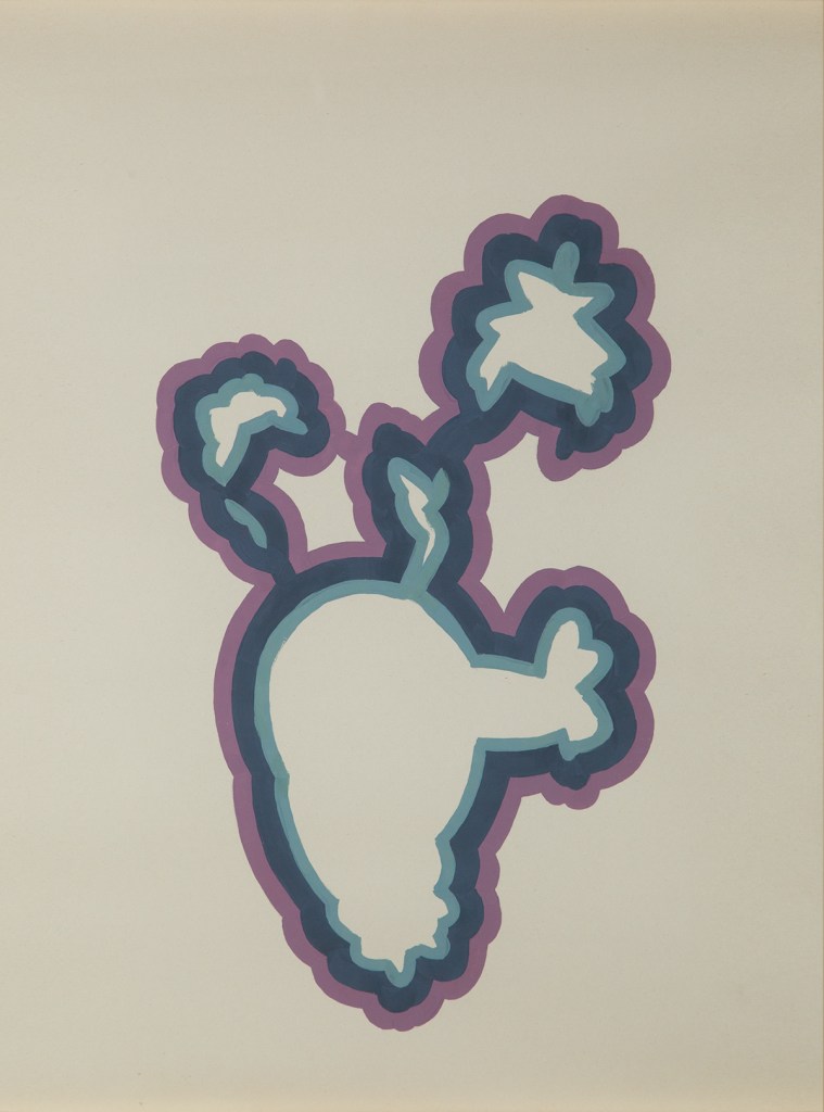 Dibujé las sombras de algunas plantas calcándolas directamente del piso. Cuando estaba pintándolas, mientras trataba de resolver cierta indecisión, asomó el conocimiento residual de un tipo de fotografías: los kirlogramas. Buscando en Google encontré que son imágenes generadas por cámaras Kirlian y que representan los campos electromagnéticos que rodean a los objetos. En las imágenes, la figura es definida por la corona de halos a su alrededor. Según los aficionados más esotéricos, puede capturarse el aura de las cosas fotografiadas.